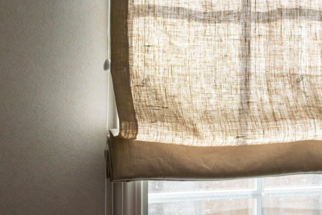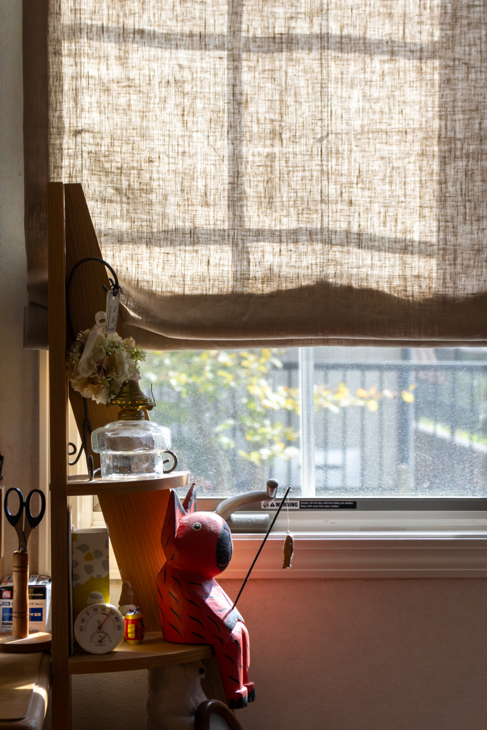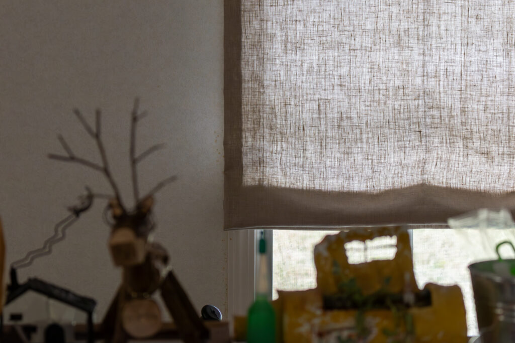 リネンの透け感がちょうどよく、外から見えすぎることもなく安心して使えます。