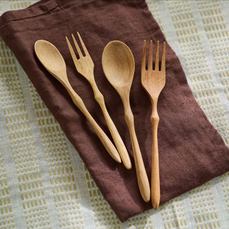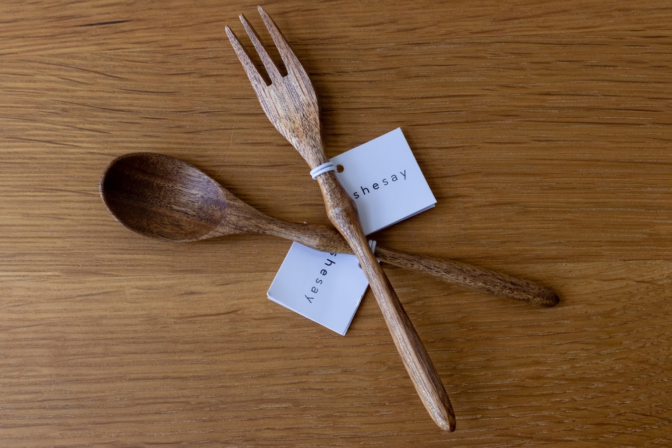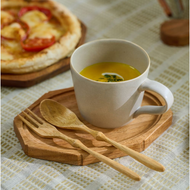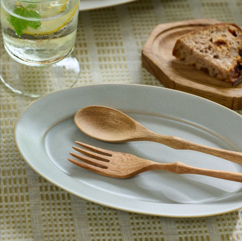 アカシアウッドならではの、木目が持つ自然の美しさと、手に取った時の軽やかな質感が魅力のカトラリーです。