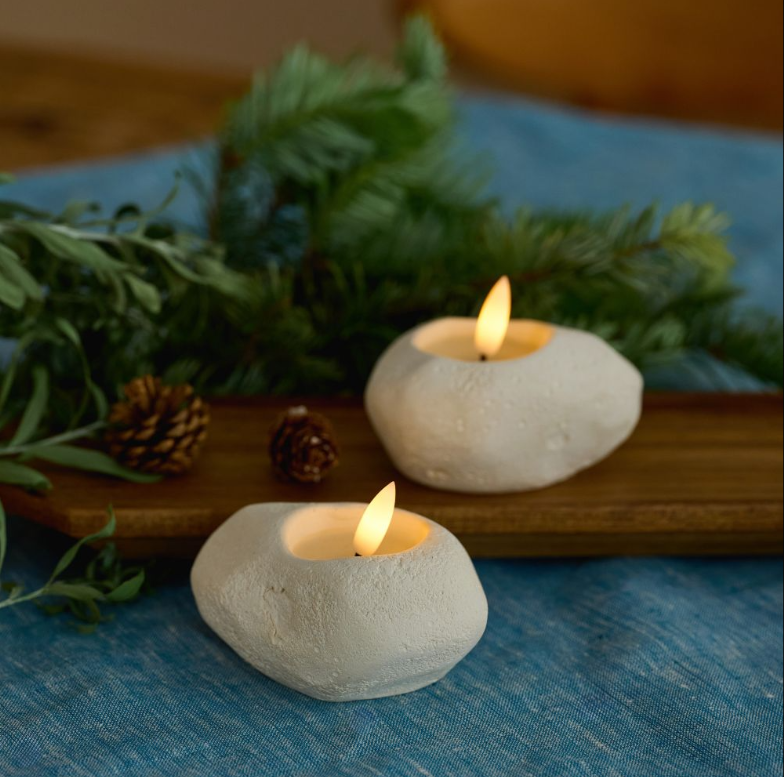 まるで石のような質感を持つ、セメント製のLEDキャンドルライト「ストーンレット」。シンプルでありながら存在感のあるデザインで、パーティーシーンやインテリアのアクセントとして空間を美しく演出します。